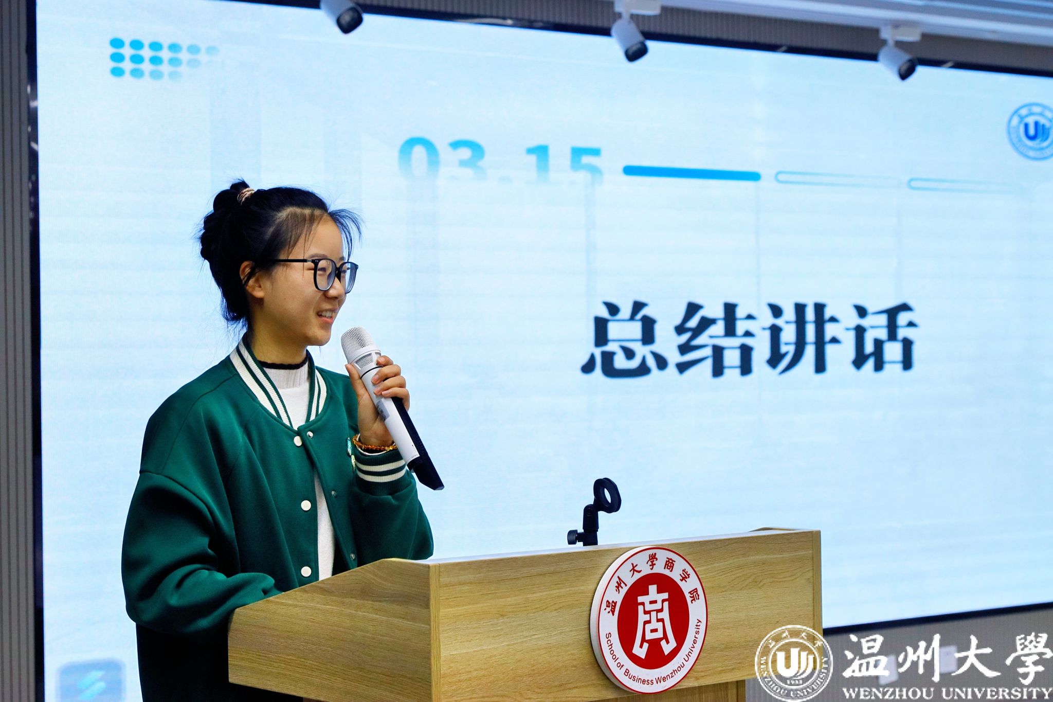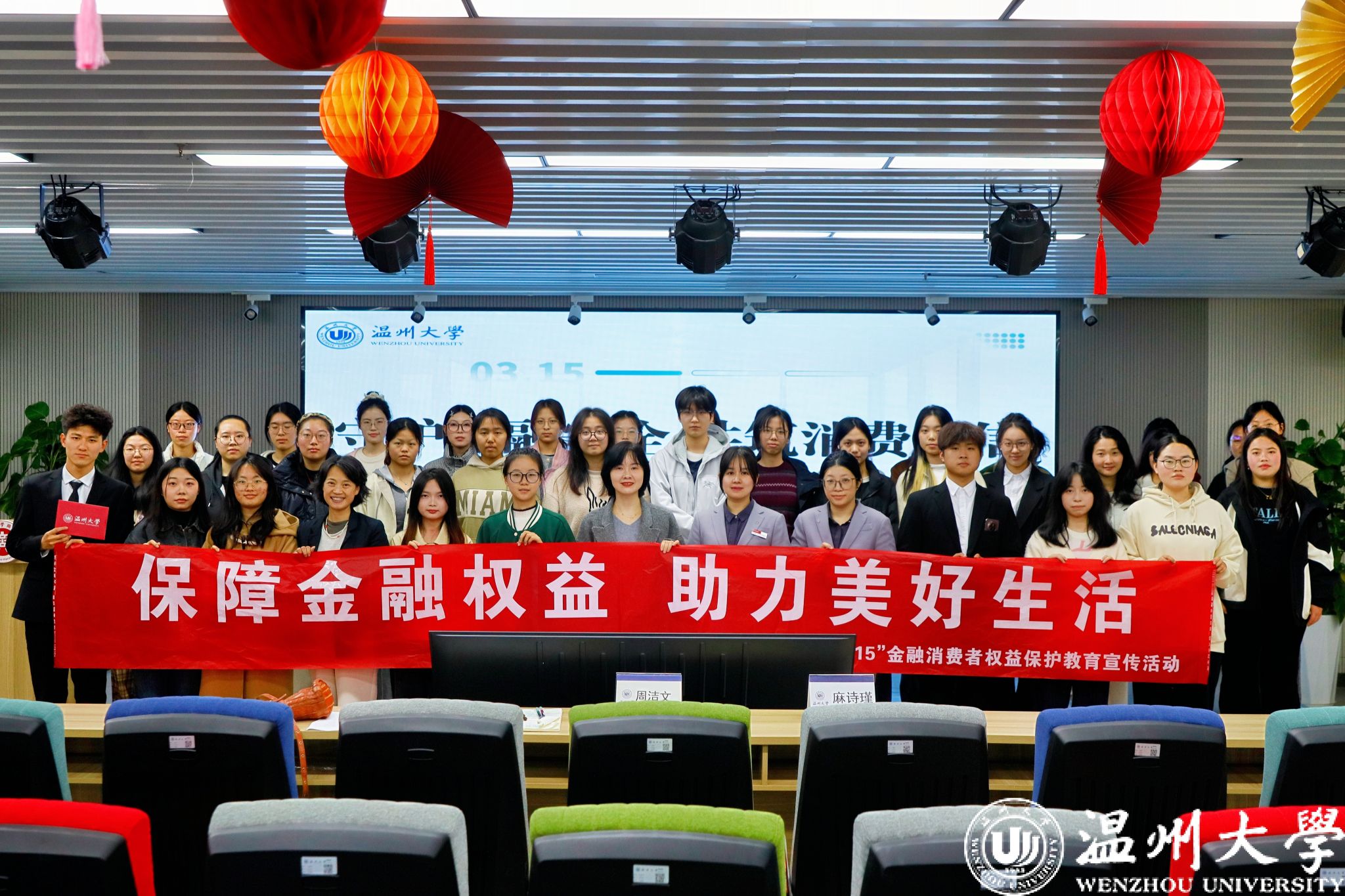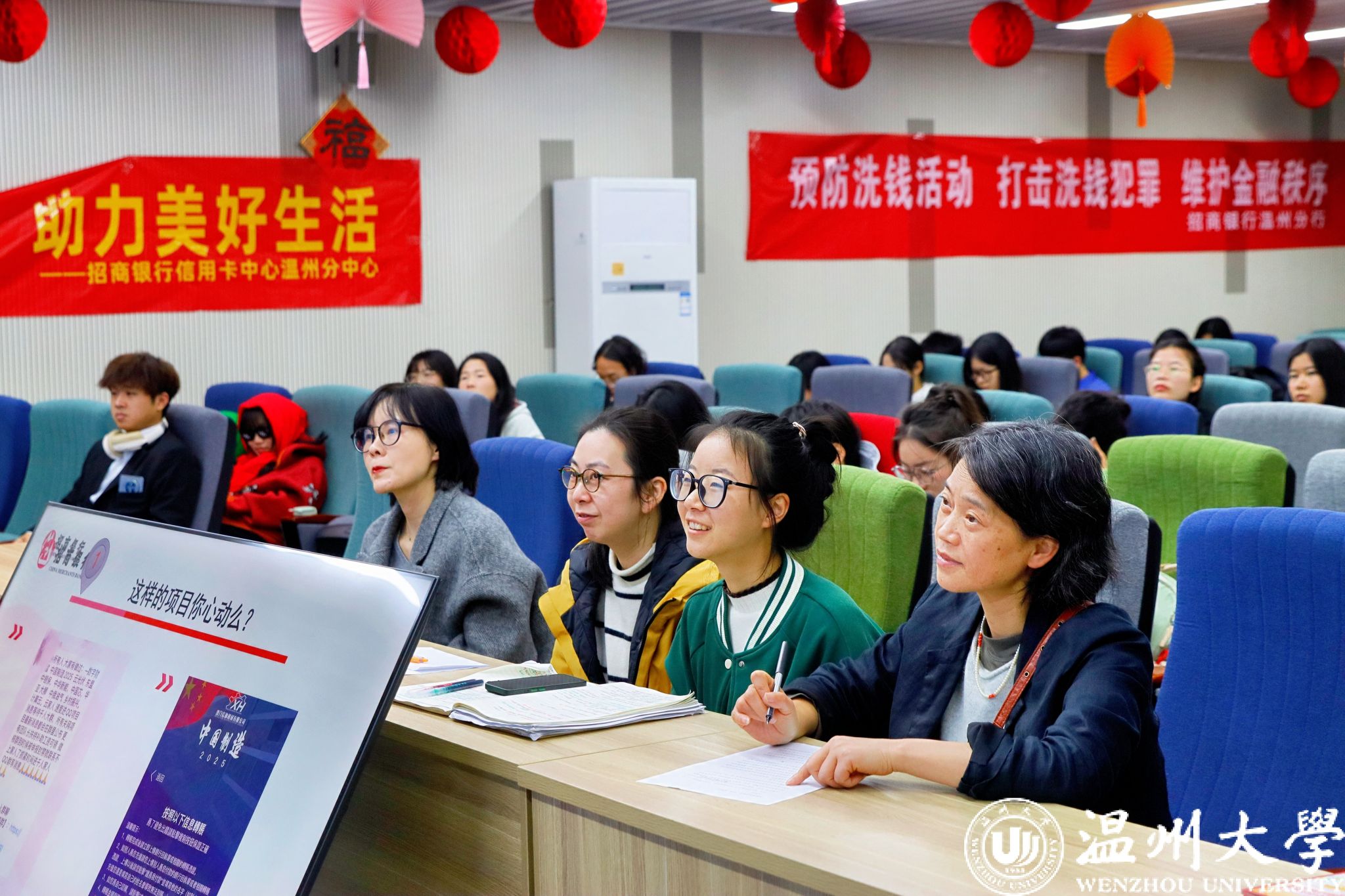 随后,招商银行温州分行黄彬彬老师通过“案例剖析+趣味问答”形式,为学生带来了一堂生动的金融小课堂《消费者权益保护与金融安全》,内容涵盖反诈防骗、个人信息保护、理性借贷等金融常识,激发了学生的参与热情,使金融知识在轻松氛围中深入人心。