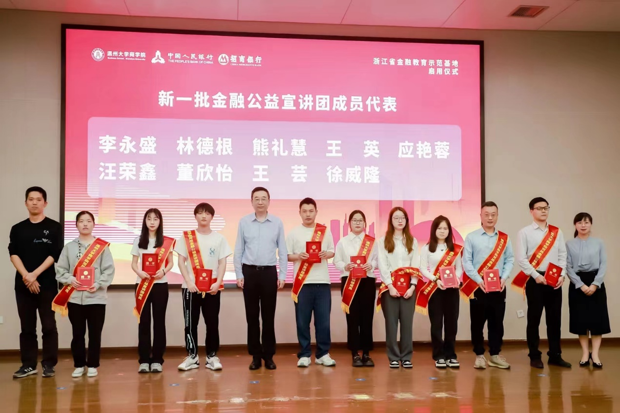 北校区信息楼报告厅隆重举行浙江省金融教育示范基地的启用仪式。中国人民银行温州市中心支行党委委员、副行长宋征威,招商银行温州分行党委书记、行长袁森,魔镜号