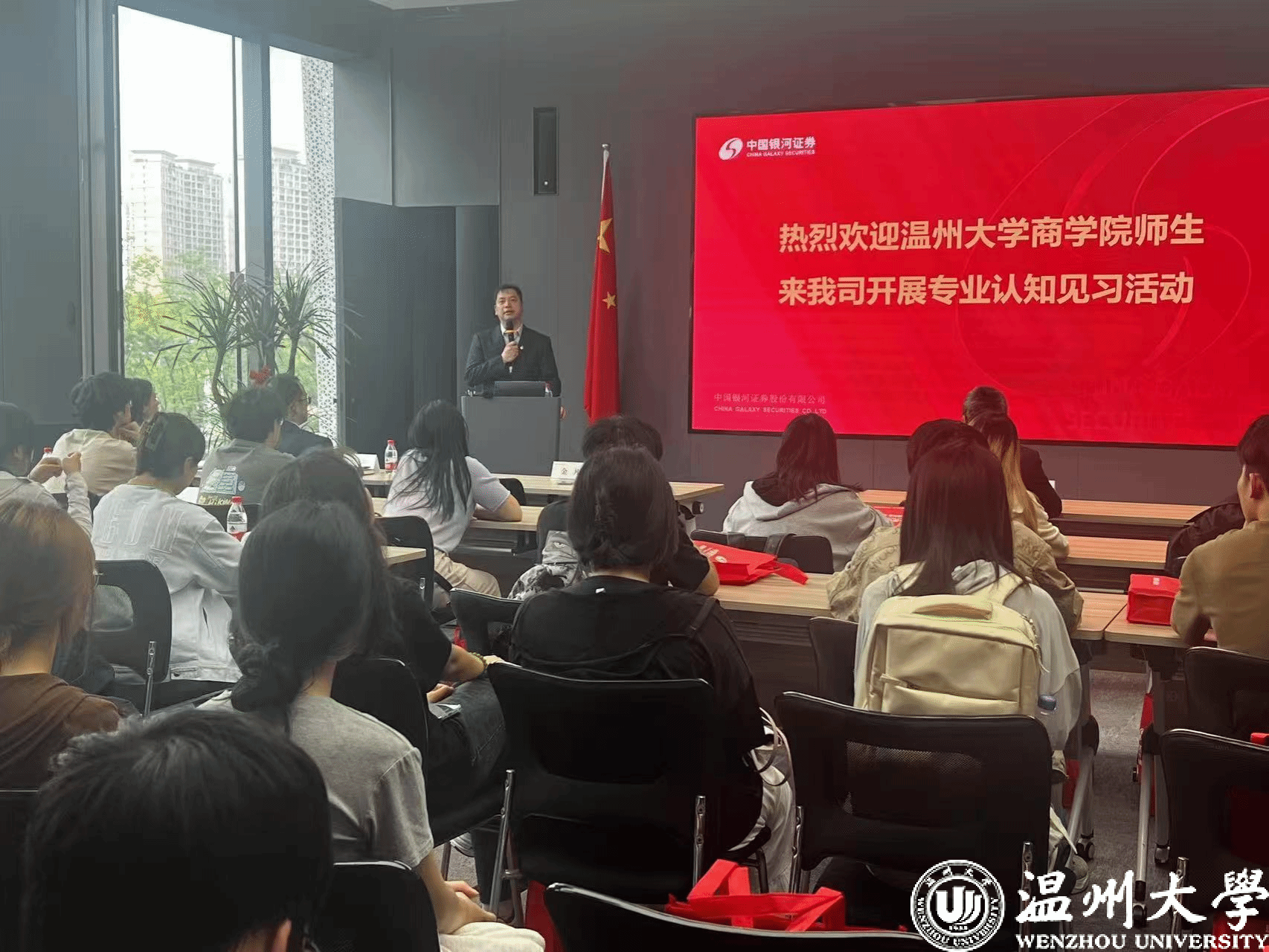 教工第一党支部以“党建+专业见习”为主题,由金融工程系主任、党支部副书记林德根带队,组织24级金融工程专业学生走进中国银河证券温州三友路营业部,开启了一场“行走的金融课堂”。支部充分发挥"党建引领、双师联动"机制优势,将专业见习与红色教育深度融合,通过参观红色金融阵地、聆听党员先锋讲座、对话行业骨干党员三大模块,构建沉浸式实践育人体系。在营业部党建文化墙前,林德根副书记现场讲授微党课,结合证券行业发展历程解读“金融为民”初心使命,引导学生感悟新时代金融从业者的责任担当。