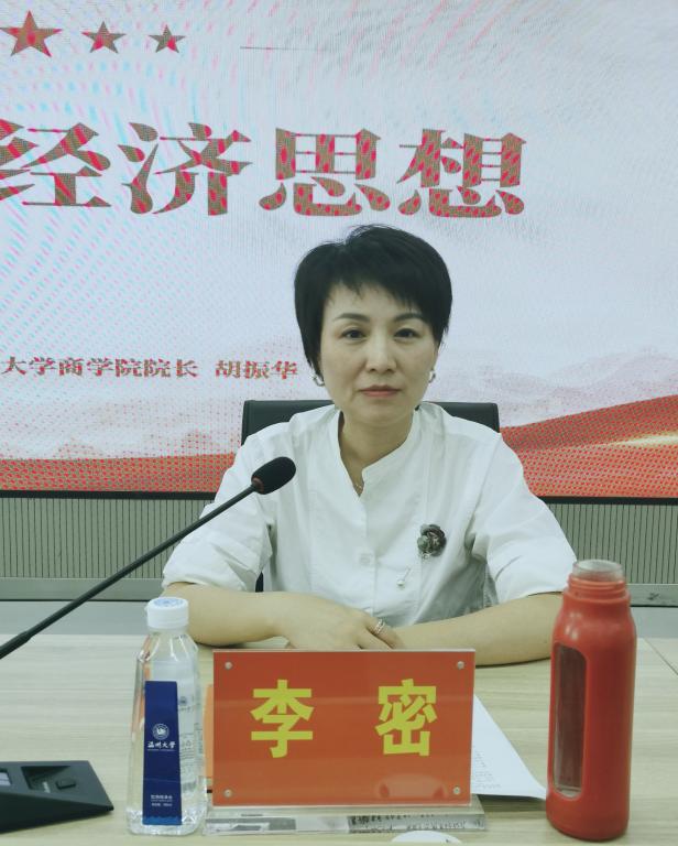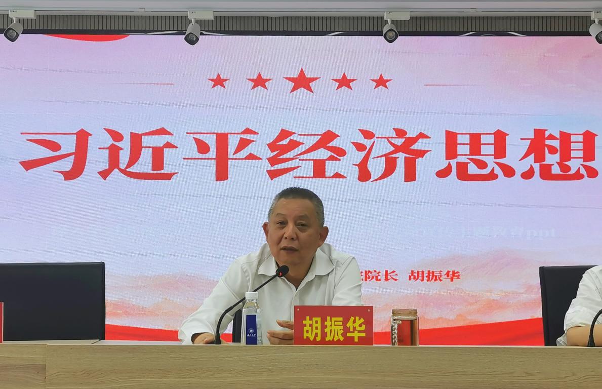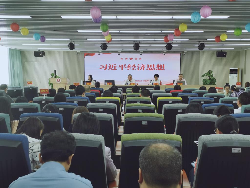 胡振华院长为大家讲题为《习近平经济思想》的主题党课,从内容、特征、意义和指导经济高质量发展四个方面带领大家深入学习贯彻习近平新时代中国特色社会主义经济思想。他强调大家要学懂弄通,用党的理论武装头脑、指导实践、推动工作。