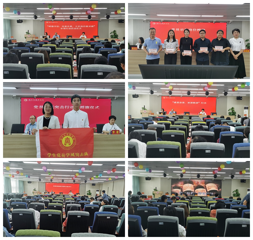 党委将主题教育落深落实,开展“明德守法、完善自我,立足岗位作贡献"专项活动。活动举行了党员示范岗授牌仪式、党员责任区划分仪式、党员学风突击队授旗仪式,部署了观看“八八战略”实施20周年大型主题展览线上展活动,开展了“感恩奋进.承诺践诺”行动,全体党员教师签署“明德守法、完善自我”专项行动承诺书,组织学习观看了师德师风警示教育片。