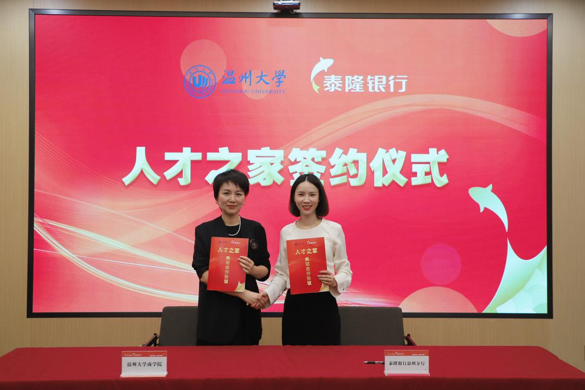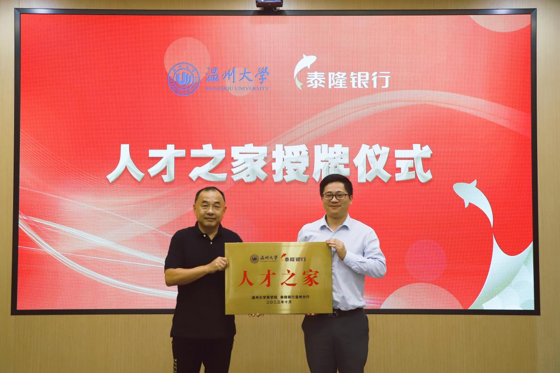 的党建共建单位,此次签约授牌将致力于共同实现“人才服务党建共同体”“人才活动温州新地标”“人才工作展示新窗口”三大建设目标,始终坚持党建引领人才发展的原则。希望在泰隆银行提供的“人才之家”良好环境中,形成长效合作机制,开展各项活动,定期交流,共同探索,把“人才之家”建设为各类商科人才想来、愿来和常来的美好家园。