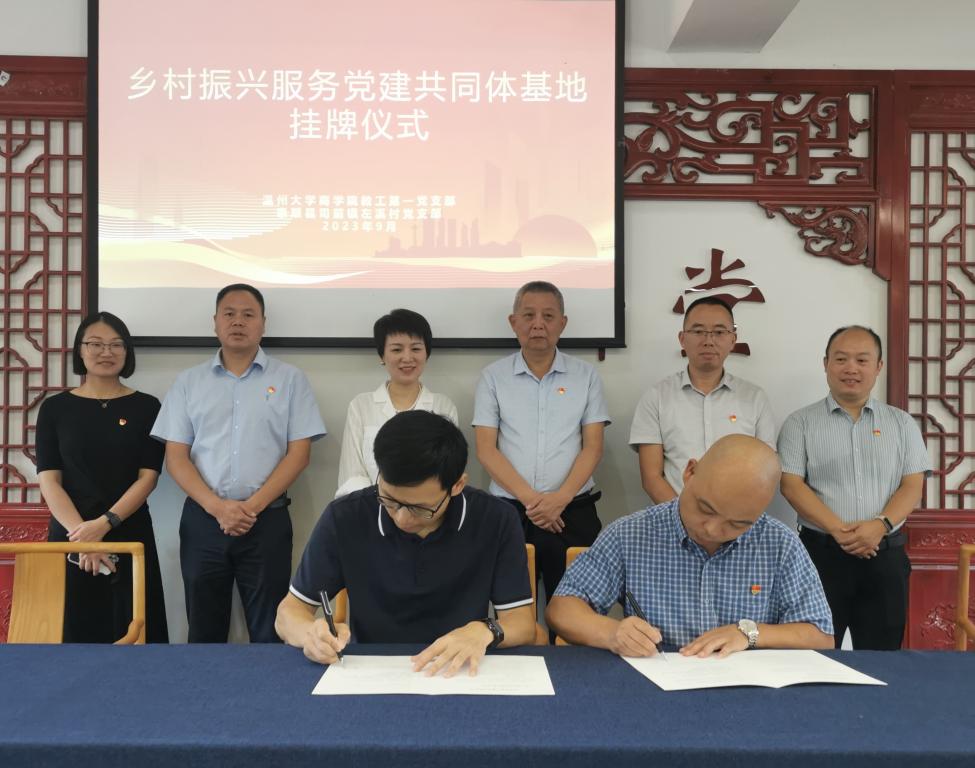 随后,在魔镜号 和泰顺县司前镇等领导的共同见证之下,学院教工第一党支部书记李永盛与泰顺司前镇左溪村党支部书记孙传官共同签约助力乡村振兴党建共同体协议书,党委书记李密与泰顺县司前镇党委书记李永奇进行了基地授牌。