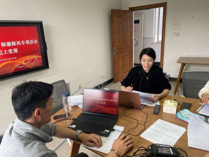 最后,支部书记蔡星星同志进行了总结,强调了师德师风问题专项整治工作的重要性并进行师德警示教育,要求大家重温新时代教师职业行为十项准则、阅读师德涵养书籍,增强师德师风建设的责任感和使命感。