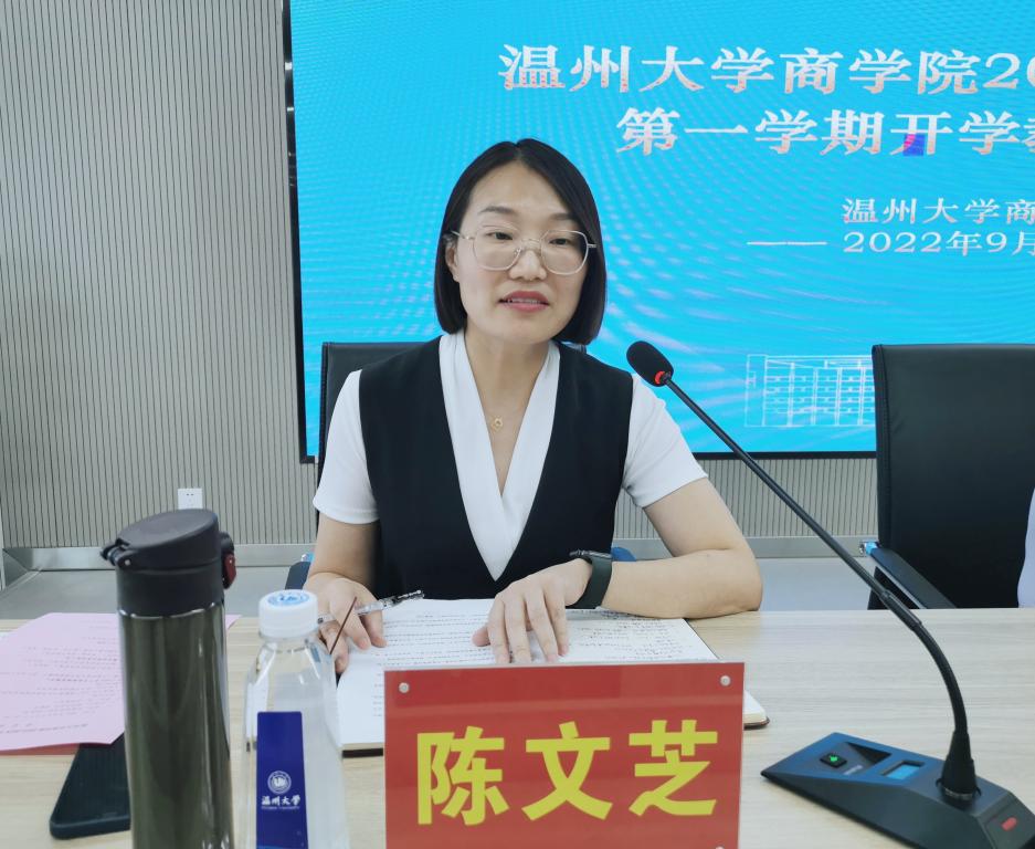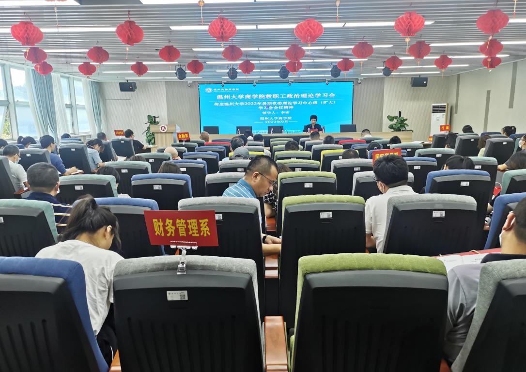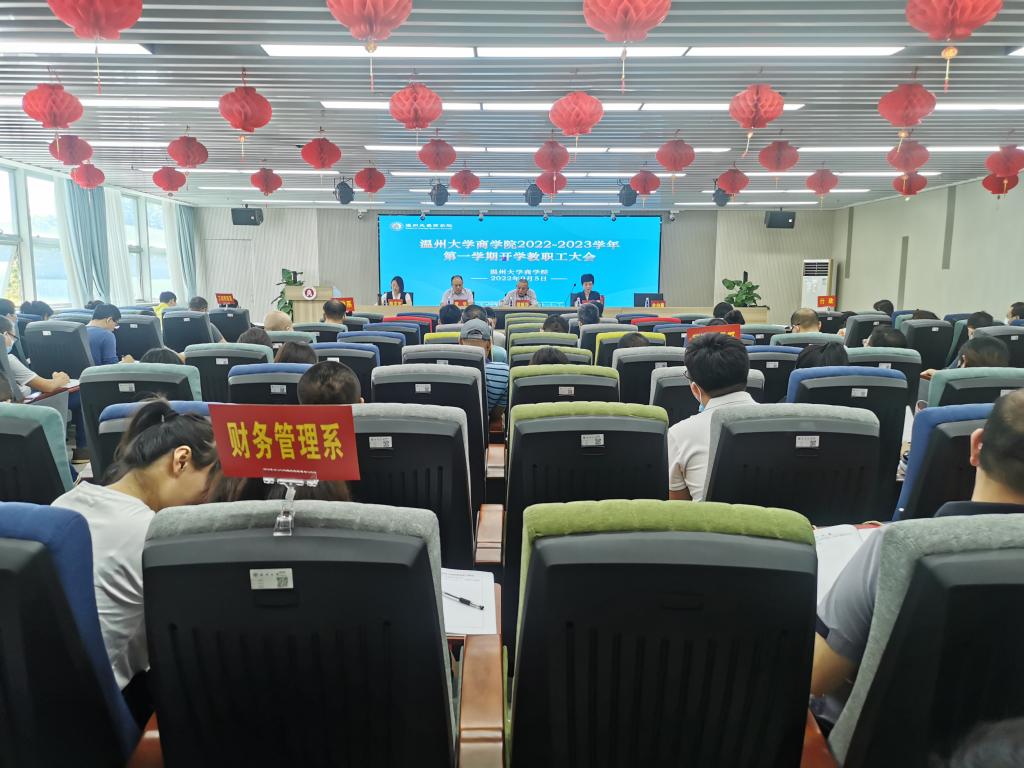 在商院楼A226仲辉商道讲堂举行2022-2023学年第一学期开学教职工大会,为新学期工作谋篇布局。会议由学院院长胡振华主持。