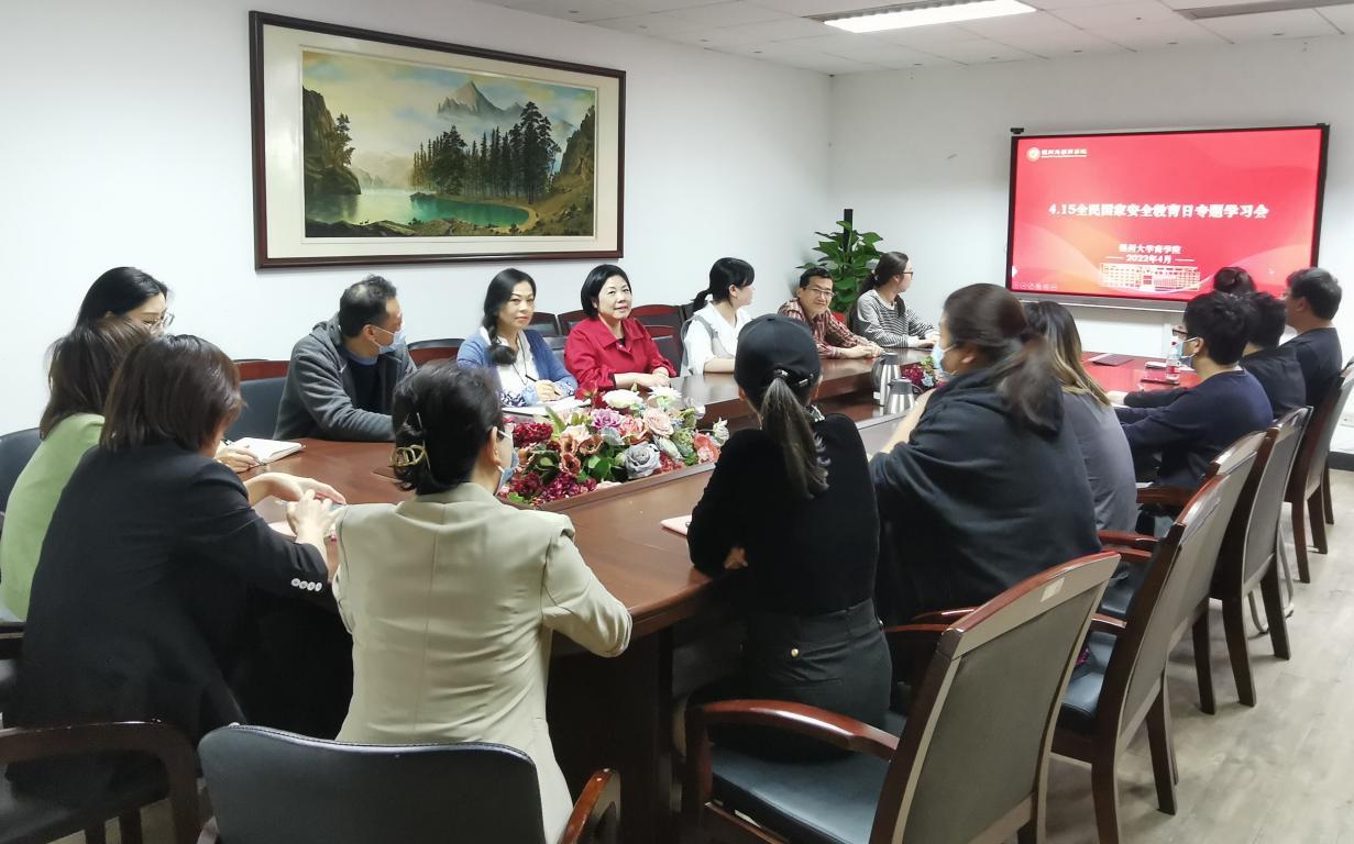 A222会议室举行4.15全民国家安全教育日专题学习会,学习了国家安全法相关内容。会上大家共同观看了“千万师生同上一堂国家安全教育课”主题公开课,并展开热烈讨论。