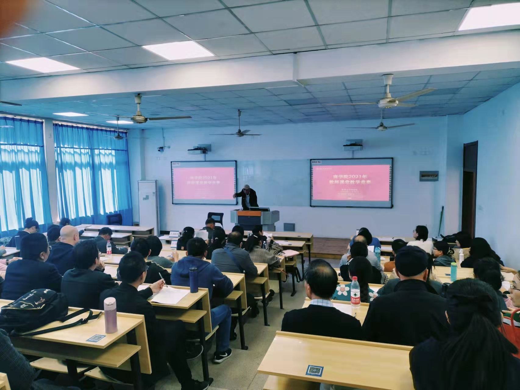 胡振华院长宣读了本次竞赛的比赛规则和评分标准,6位参赛教师按抽签顺序每人讲授15分钟内容,评分分别从教学教态、教学内容、教学方法、教学手段、教学效果、教学反思、课程思政等几个方面进行。