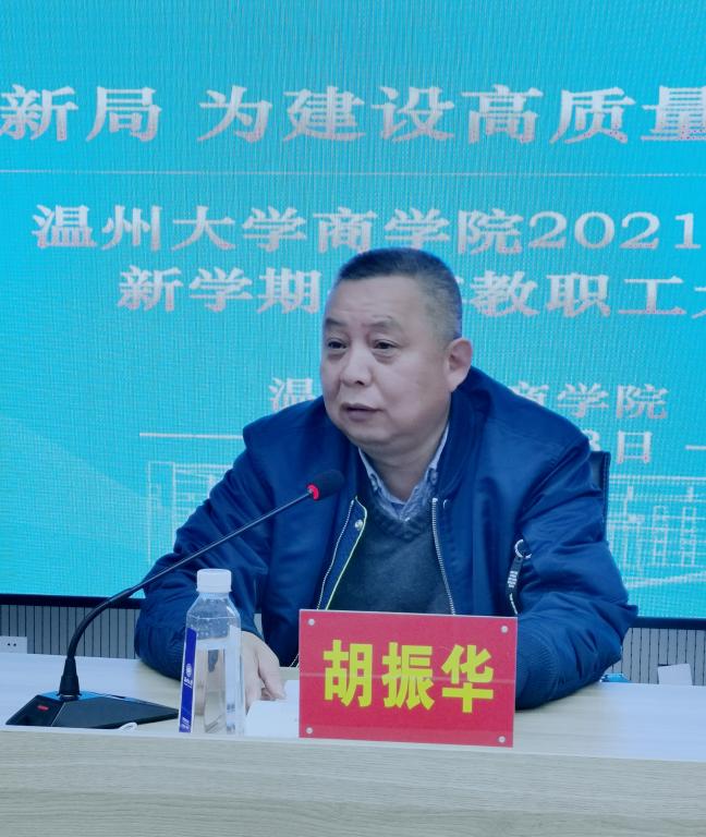 的办学实际发表讲话。他指出学院现已形成本科生、研究生、留学生、非学历生“四位一体”办学格局,专业建设、学科建设,平台建设,教职工队伍建设“四轮驱动”体系,他鼓励大家再接再厉,勇攀高峰,配合学校3818战略,为学院奠定更加雄厚的基础、打造更加美好的未来。他强调,学院目前发展面临的压力依然巨大,今年的任务依然繁重,希望大家把握当下、立足长远,牢记习近平总书记殷殷嘱托,以“功成不必在我”的精神境界和“功成必定有我”的历史担当奋力推进事业发展,为学院未来的发展奠定坚实的基础。最后他祝福魔镜号