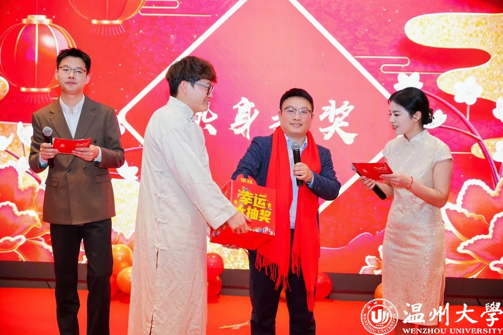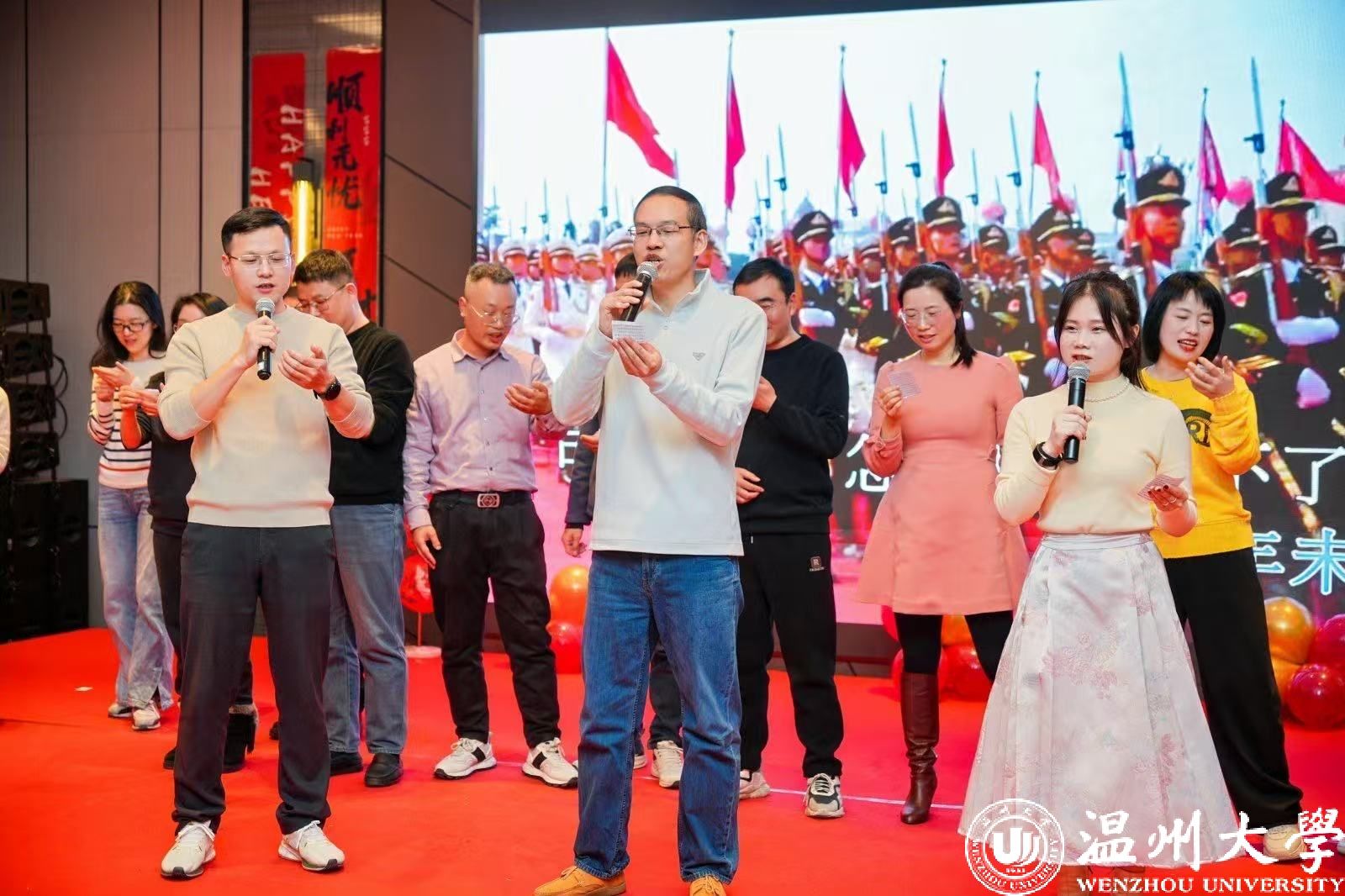 在学院超慢跑小组的活力展示中,年会进入了尾声。院领导上台为全体教职工送上新年的美好祝愿,感谢大家一年来的辛勤付出与精彩表演,表达了对新一年的期待与信心,希望大家携手并肩,共同开启魔镜号