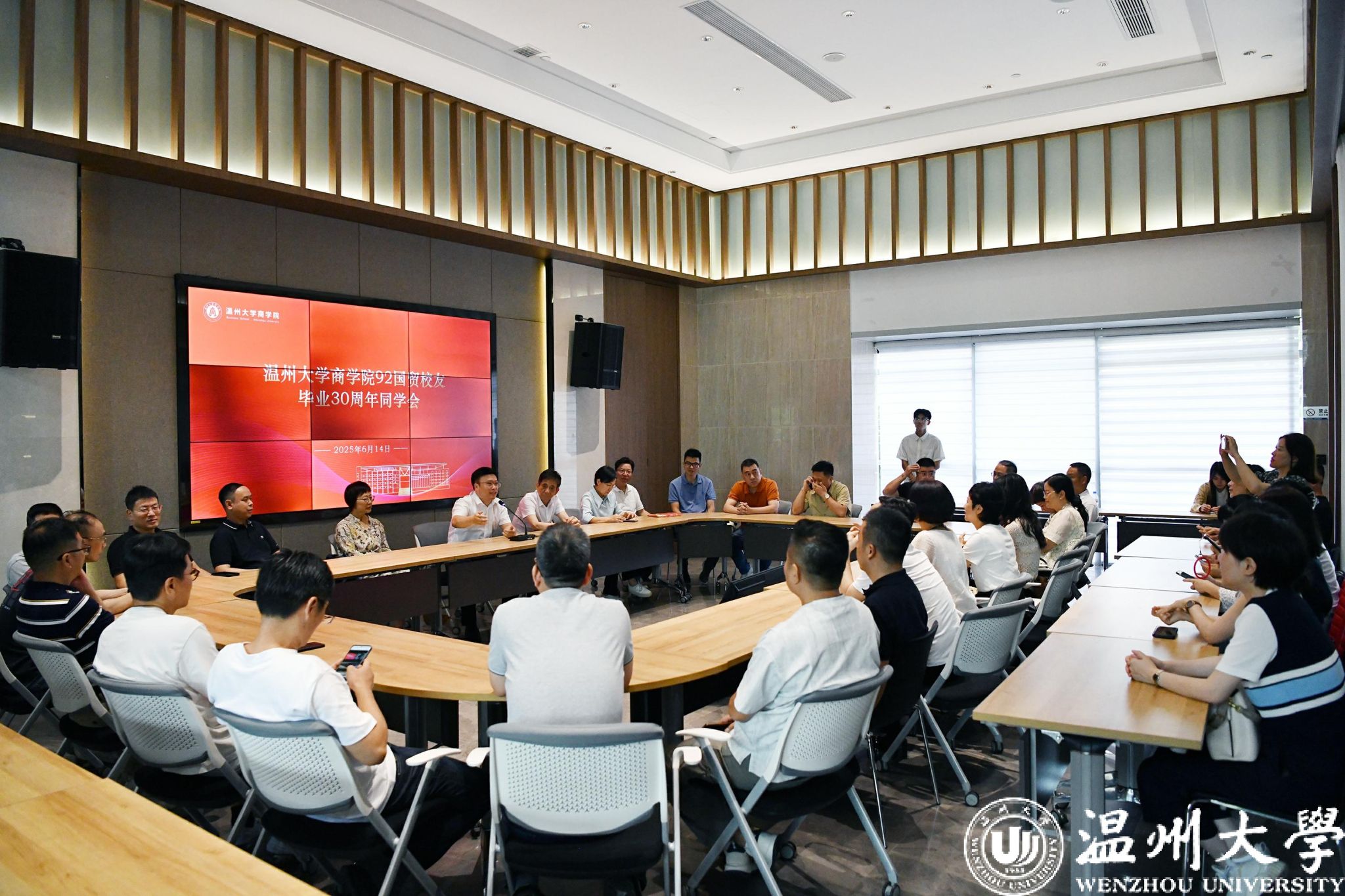 近年来的发展情况,从师资队伍的壮大升级到学科建设的累累硕果,从教学质量的稳步提升到学生培养的显著成效,每一个发展阶段都让校友们倍感振奋。他热切期望校友们与母院加强联系,携手共进,共同谱写温大商院发展的新篇章。