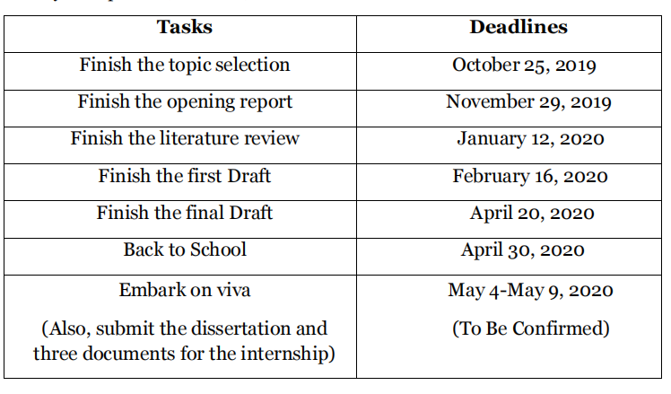 Unfortunately, some students still choose not to comply with them. I would like to re-emphasise that the arrangement of tasks and deadlines is critical, and students must follow supervisors’ guidance and maintain regular communication with them. So far,among others, we identified three students (Nyashanu Sarudzai 1651165045; Ndhlovu Shawlyn Lindokuhle 1651165034; Muvunde Simplisio 1651165041) have literally ignored all communication from their supervisor since the beginning of the dissertation writing. This is unacceptable! The department reserves the right to take further actions considered appropriate.