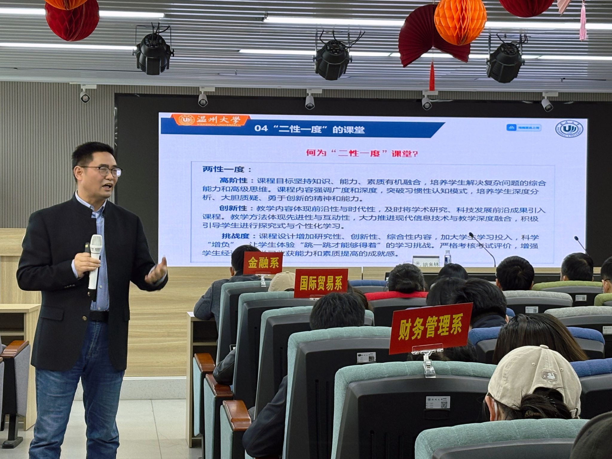 本次会议邀请了胡来林教授作《浅谈建构学生和专家双满意课堂》的专题讲座。胡教授系统阐述了优质课堂的八大特征:良好秩序、融入课程思政、知识建构、二性一度、信息技术赋能、有效评价、以学生为中心和教学机智。他特别指出,在AIGC时代背景下,教师应深化建构主义学习理论应用,善用智能技术辅助教学,打造更具高阶性、创新性、挑战度和以生为本的智慧课堂。讲座最后,胡教授与现场教师就审核评估中的教学问题进行了交流。